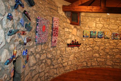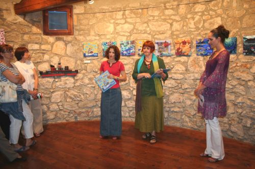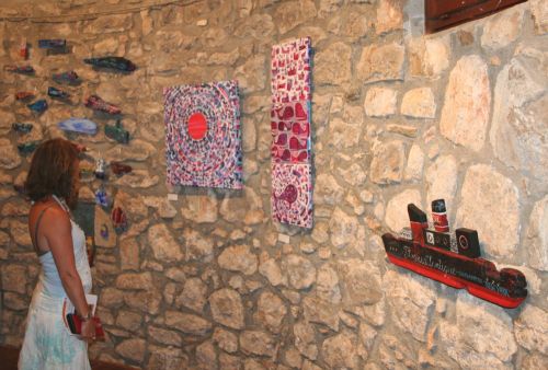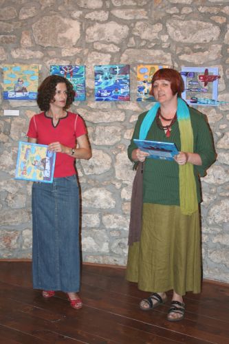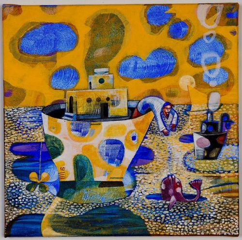 If childhood is a symbolic paradise island in the sea of rough reality we all have to leave one day, Manuela Vladić Maštruko suggests, through her new exhibition under the title “Island of Childhood”, that we can always return to this island, at least for a short time. A central part of the exhibition is given to paintings from the cycle “The Sea Dream” which are more than illustrations for her new picture book having the same title. Every small acrylic painting on canvas is at the same time a part of the story we might know and presents a painting for itself, artistically integral and self-sufficient. Recognizably surfaced construction of space almost as in collage, rich colourism and stylized forms are even more revealed on large canvases, geometrism of which is close to abstraction. What makes the exhibition “Island of childhood” particularly interesting are installations made of deposited matter, i. e. of wood washed ashore by the sea on which the author paints motives of fishes and ships, giving wood a new life.